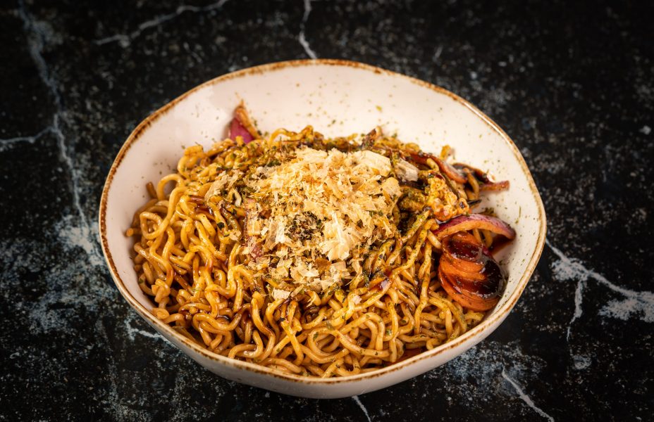 Fideos salteados con verduras variadas y salsa yakisoba secreta.